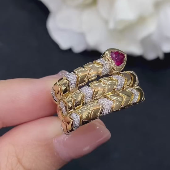 Luxury 18K Yellow Gold Natural Ruby & Diamond Ring