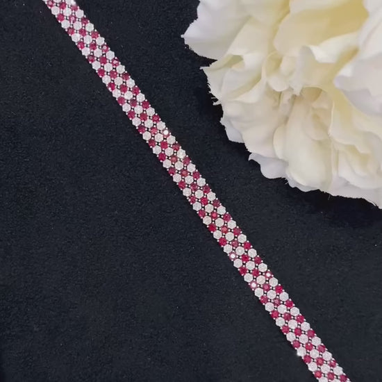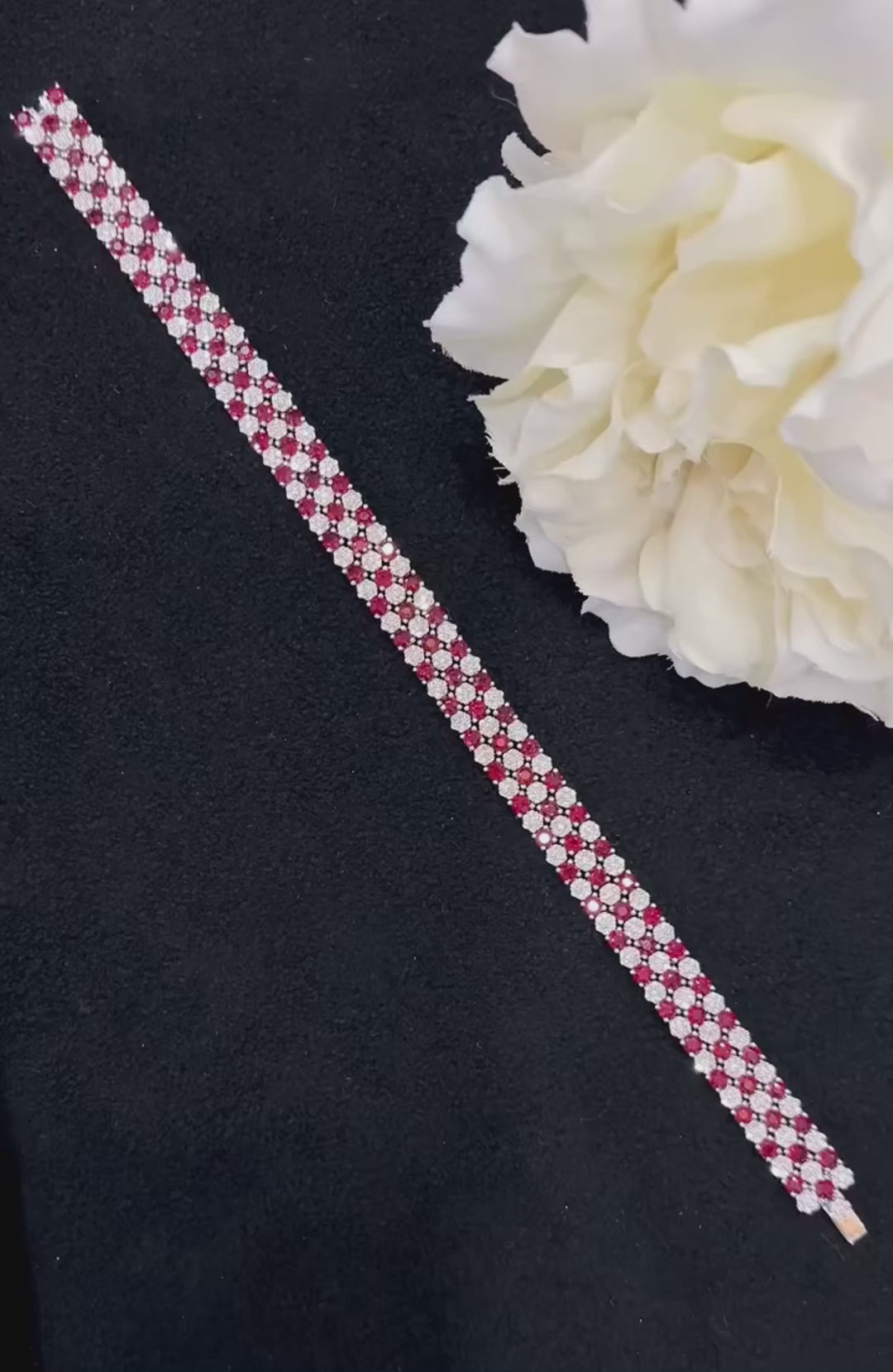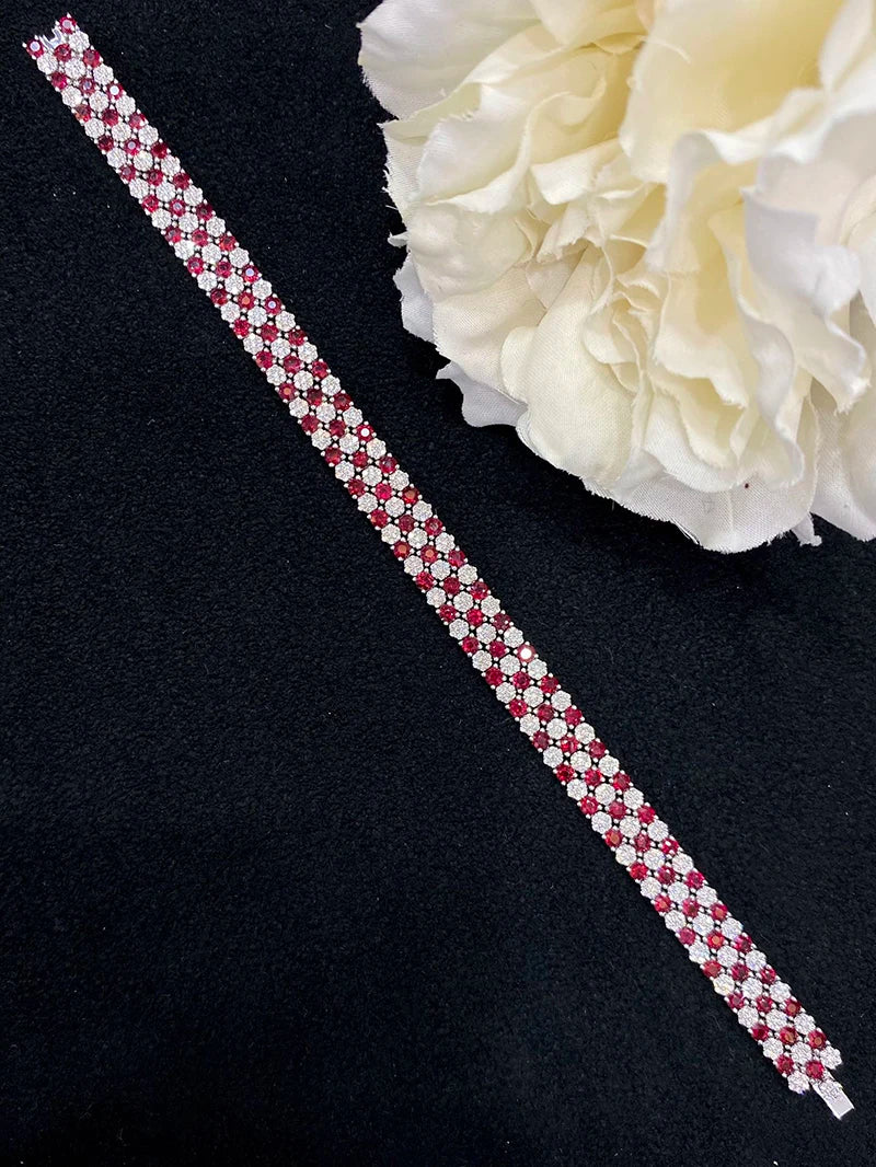Luxury Honeycomb 18K White Gold Natural Diamond & Ruby Bracelet